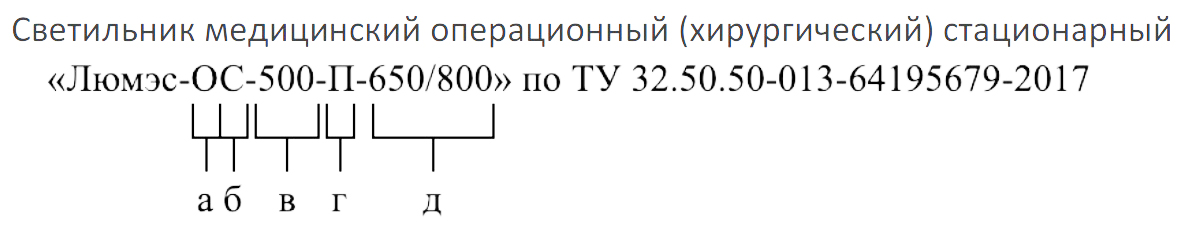 Условные обозначения для вариантов исполнения светильников:
