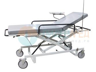 Тележка ТБПв-01-МСК имеет подъемный механизм, что особенно удобно при работе в хирургических отделениях. Имеется одна секция, защитный бортик и поручни для пациента. Колеса диаметром 12,5 мм оснащены двумя фиксаторами, есть возможность установки более крупных колес. В комплект входит поролоновый матрац с наматрацником из искусственной кожи.