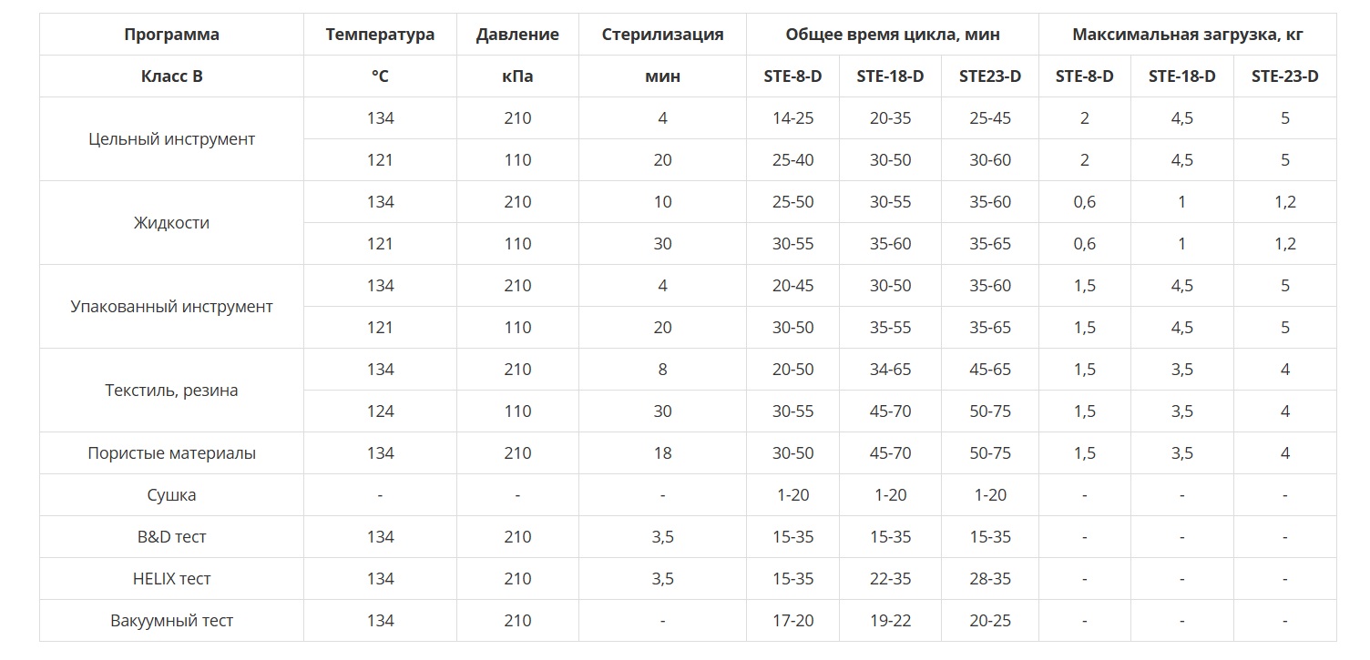 Автоклавы класса B подходят для стерилизации всего спектра современных медицинских материалов, инструментов и принадлежностей, характеризуются циклом пред-вакуума и вакуумной сушкой. Эти автоклавы могут использоваться для всех видов материалов: цельных, упакованных, полых упакованных типов A и B, пористых, жидкостей. Автоклавы ICANCLAVE STE 8/18/23 имеют повышенную точность управления стерилизацией, жидкокристаллический дисплей, надежный вакуумный насос.
