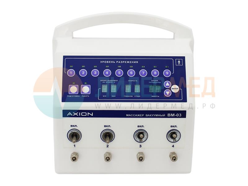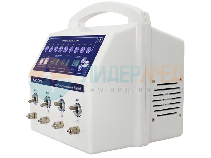 Массажер вакуумный ВМ-03 предназначен для проведения физиотерапевтических процедур, сеансов массажа, посредством разрежения (вакуума) создаваемого в прозрачных пластиковых банках. Процедура вакуумного массажа показана для лечения остеохондроза и обусловленных им заболеваний периферической нервной и сосудистой систем, опорно-двигательного аппарата. Массажер может применяться в физиотерапевтических кабинетах различных поликлиник и стационаров, а также косметологических кабинетах.