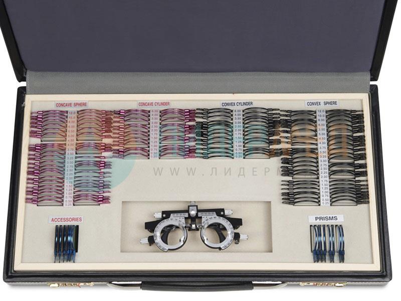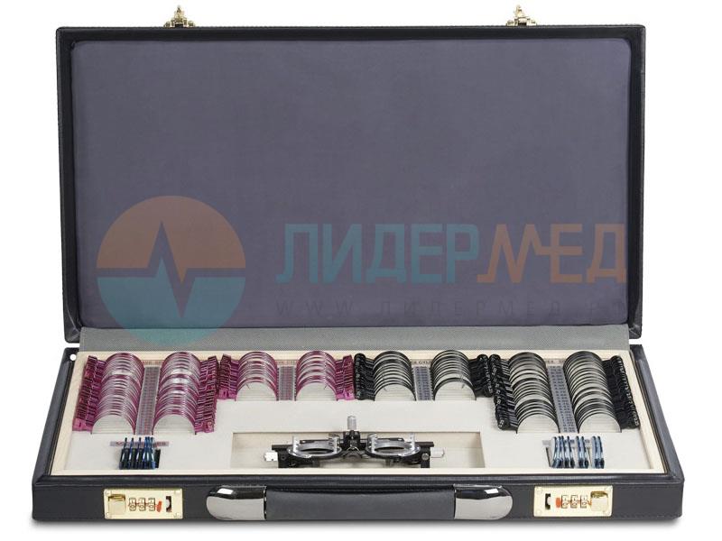 Комплект пробных очковых линз предназначен для обследования отклонений зрения: миопия, гиперметропия, астигматизм и пресбиопия, для обследования страбизма и цветовой слепоты. Также набор используется для подбора очков и линз. Набор пробных очковых линз укомплектован пробной универсальной оправой ОПУ и поставляется в кожаном чемодане.