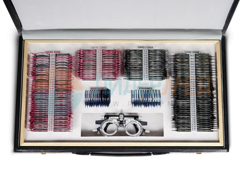 Комплект пробных очковых линз предназначен для обследования отклонений зрения: миопия, гиперметропия, астигматизм и пресбиопия, для обследования страбизма и цветовой слепоты. Также набор используется для подбора очков и линз. Набор пробных очковых линз укомплектован пробной универсальной оправой ОПУ и поставляется в кожаном чемодане.