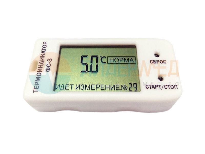 Термоиндикатор ФС-3 является изделием медицинского назначения, предназначен для контроля температурного режима при перевозках и хранении лекарственных средств, донорской крови и ее компонентов, скоропортящихся продуктов питания, различных растворов и продуктов химической промышленности в системе холодовой цепи. Использование в термоконтейнерах, холодильном и морозильном оборудовании. Термоиндикатор состоит из микроконтроллера, источника питания, термодатчика и жидкокристалического индикатора, размещенных в пластиковом корпусе.
