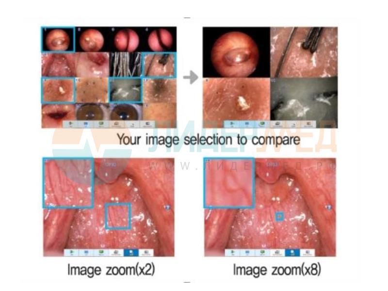 Функции DSP (процессора цифровых сигналов) | Full HD видеоизображение; Cоотношениями сторон экрана 16:9; Баланс белого (3400 ̊К, 5100 ̊К, 6500 ̊К, вручную); Сравнение изображений (1,2,4,16); Настройки изображения: - яркость, насыщенность, четкость, контраст, автоматическая регулировка усиления; - экспозиция, разворот, баланс белого. Цифровое увеличение до 3х; Управление графическим интерфейсом пользователя мышью. |